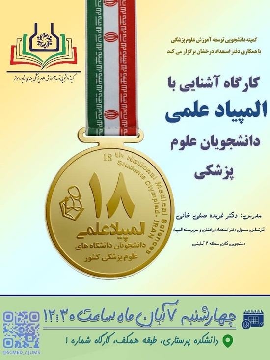 کمیته دانشجویی توسعه آموزش علوم پزشکی با همکاری دفتر استعداد درخشان و مرکز المپیاد علمی دانشجویی دانشگاه علوم پزشکی اهواز برگزار می کند.