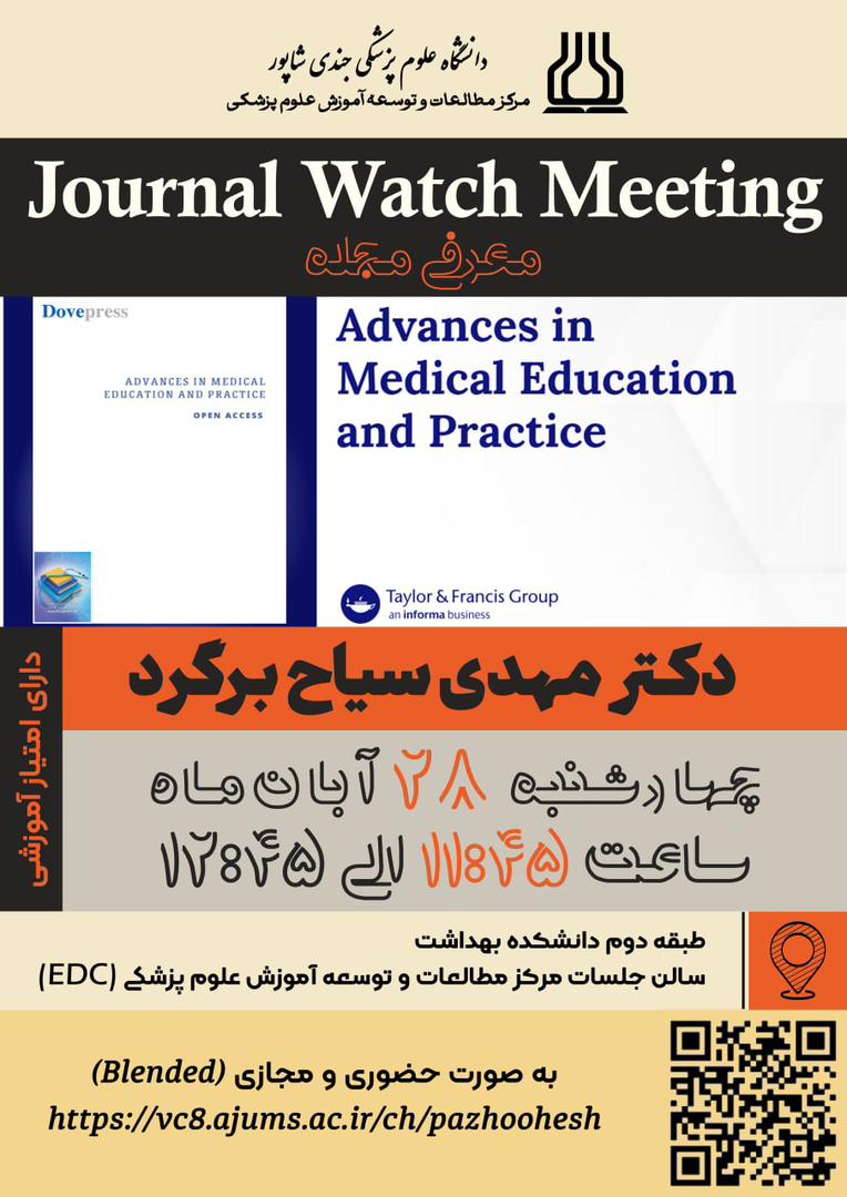 برگزاری جلسه Journal Watch Meeting باموضوع معرفی مجله Advances in Medical Education and Practice