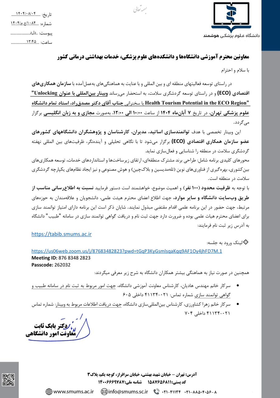 برگزاری وبینار بین المللی Unlocking Health Tourism Potential in the ECO Region